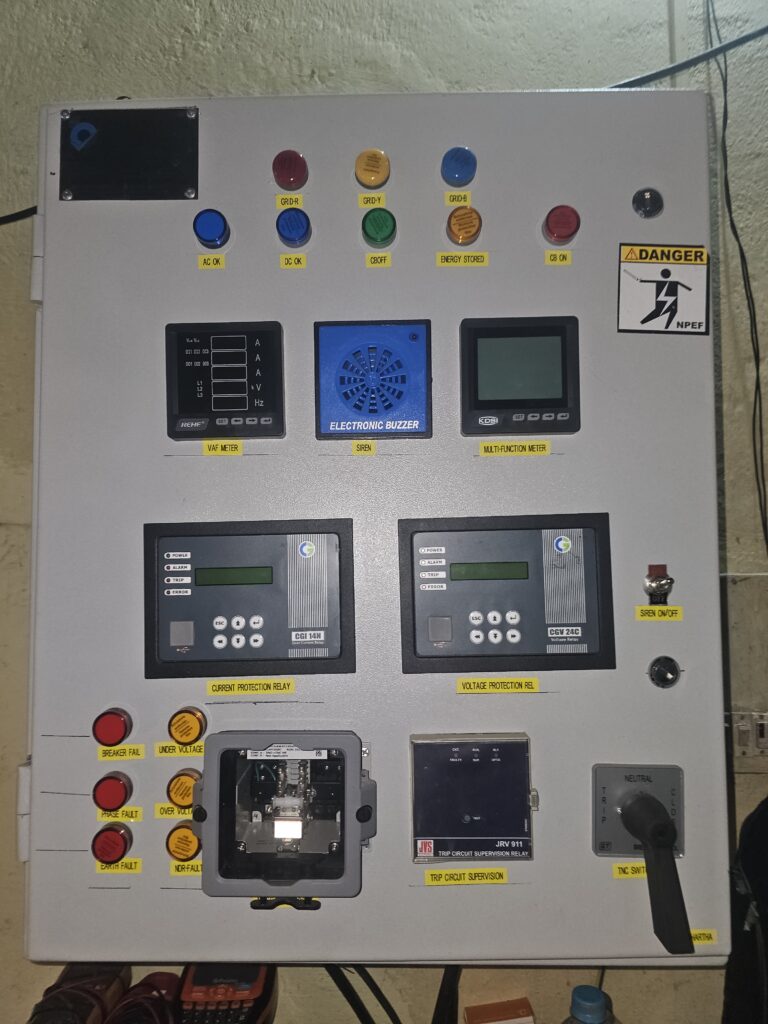 To safeguard sensitive electrical components, auxiliary power for the DLCS and VCB panels is supplied through a battery bank with online UPS. This setup ensures uninterrupted protection and control functions, adding an extra layer of operational security.